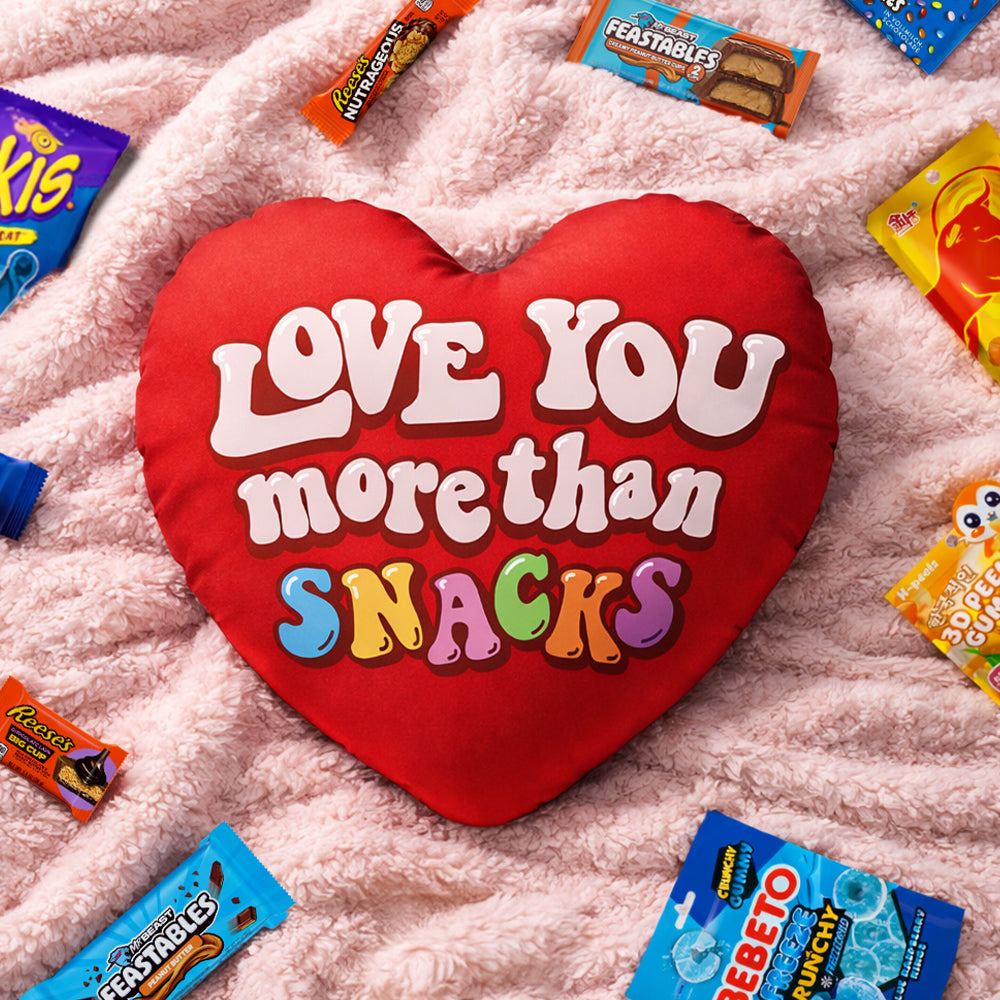 Valentine’s Heart XL, coussin en forme de cœur avec 30 snack douceurs sucrées et salées surprises