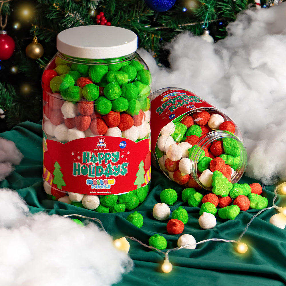 Conosci un fan dei marshmallow e vuoi sorprenderlo con un regalo di Natale originale? Mallow Jumble fa proprio al caso tuo! Questo barattolo è la quintessenza del paradiso dei marshmallow. A te spetta il divertente compito di mixare i gusti marshmallow per rendere ancora più unico il regalo: selezionane fino a 6 diversi tra più di 10 disponibili e crea il Mallow Jumble fatto su misura per il destinatario del regalo!