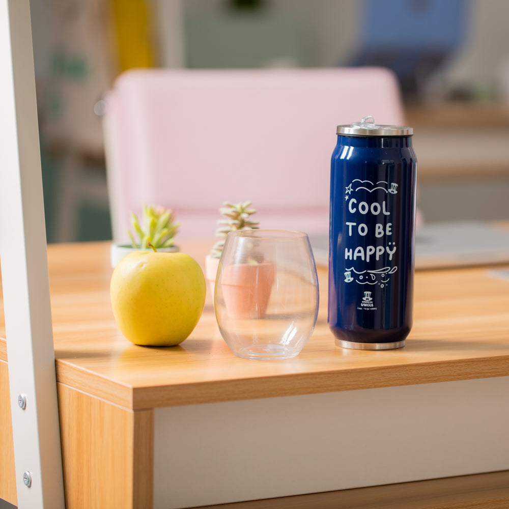 Bouteille Cool to be Happy, bouteille en acier bleu de 500ml avec paille antibactérienne intégrée