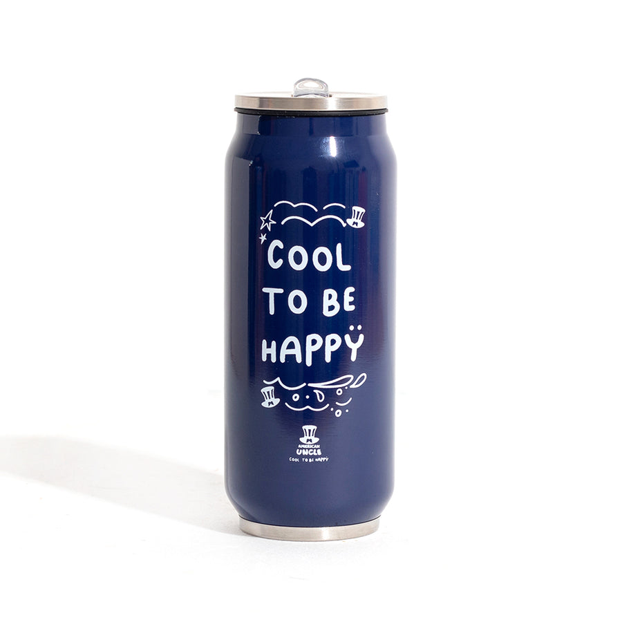 Gourde Cool to be Happy, gourde en acier résistant de 500 ml avec paille antibactérienne intégrée, couleur bleue avec texte Cool to be Happy blanc, 6,3 x 17,5 cm.