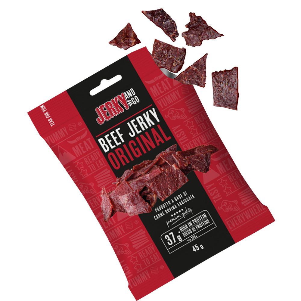 Maintenant que la renommée de la viande séchée a dépassé les frontières des États-Unis, il est temps pour vous de l'essayer : goûtez également les autres variantes de goût et choisissez votre viande séchée Jerky and Go préférée !
