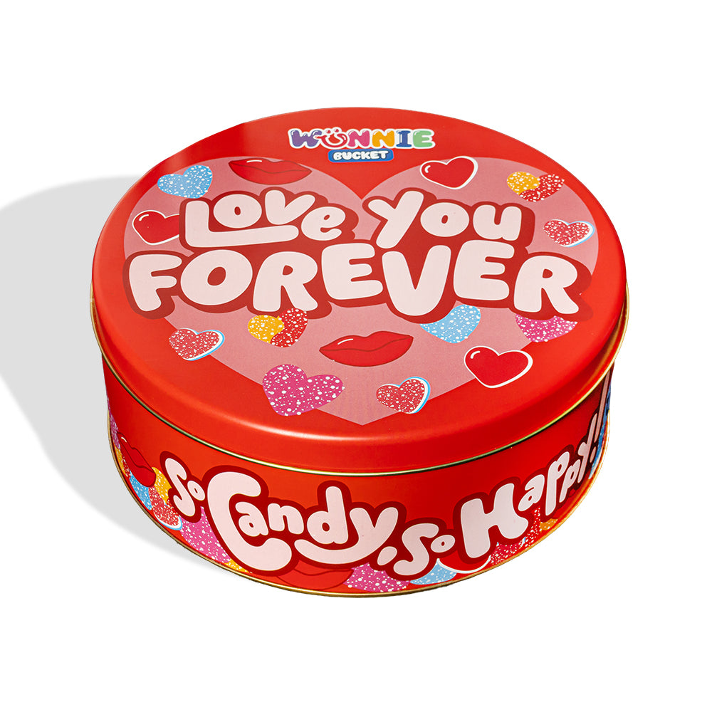 Cette année, pas de flèches : pour conquérir son cœur, 2 kg de bonbons suffisent ! La boîte Wunnie Bucket « Love You Forever » est une boîte en métal super colorée, pleine de messages d'amour et de bonbons qui font impression avant même de les goûter. Ouvre-la et l'effet est immédiat : parfums, couleurs et douceur qui parlent d'eux-mêmes.