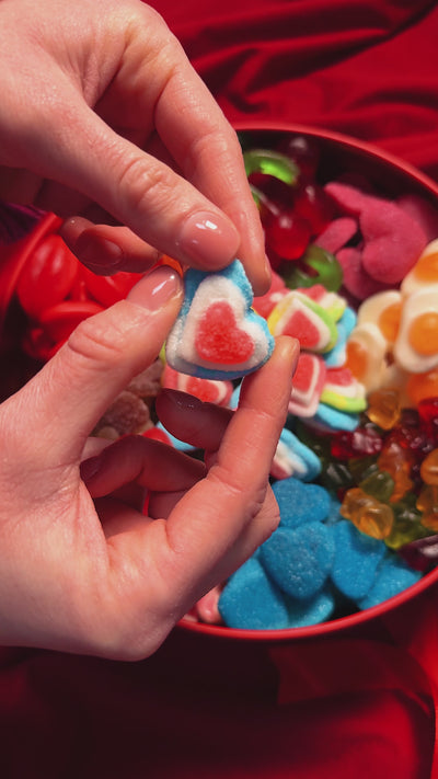 Ici, l'amour passe par les bonbons... et tu décides tout : choisis jusqu'à 10 goûts parmi plus de 40 options, entre classiques et ceux sur le thème de la Saint-Valentin. Personnalise le mélange et fais mouche, sans besoin de Cupidon. Commande avant le 8 février pour le recevoir à temps pour la Saint-Valentin. Cupidon se reposera, toi tu feras mouche 💘